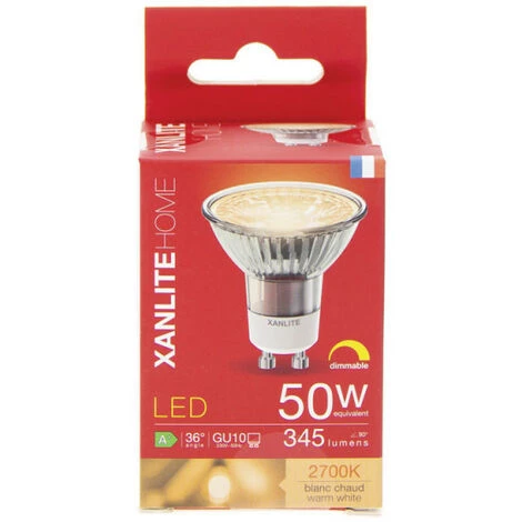 - Ampoule à LED, d’intensité d’éclairage 345 lumens pour seulement 6,5W consommé.