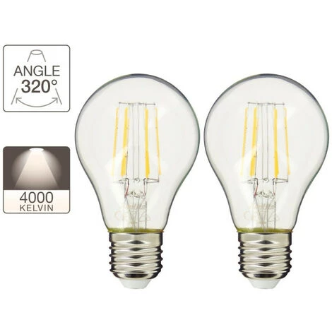 Lot de 2 ampoules LED A60 – Culot E27 – 4000 kelvins – retro-LED