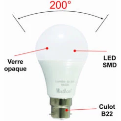 Une ampoule A60 de 60W d’équivalence pour seulement 7W de consommation et son culot B22. Cette ampoule offre de nombreux avantages :