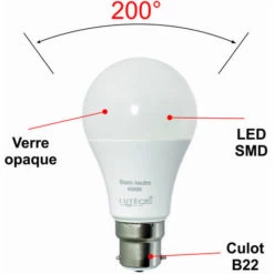 - L’ampoule A60 Xanlite à culot B22, remplacez vos anciennes incandescentes par des ampoules à LED et gardez une performance de rendement supérieur grâce à la technologie LED.