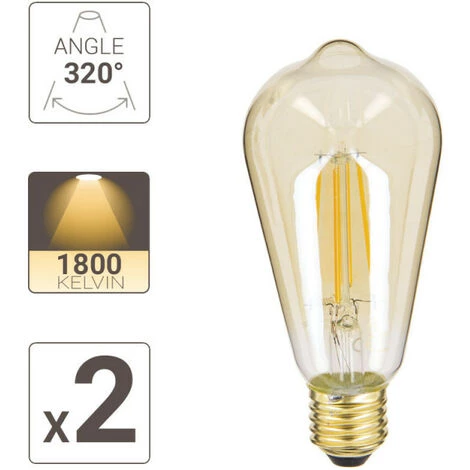 Lot de 2 ampoules LED Vintage ST64 aux verres ambrés au gros culot à vis E27 permettant une installation simple et rapide.