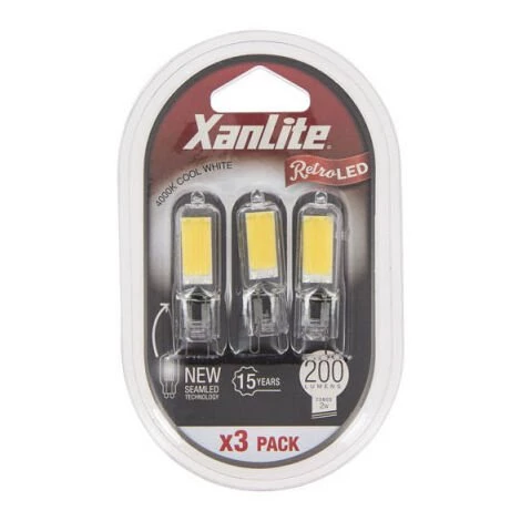 Lot de 3 ampoules RetroLED Capsule, au culot G9 dit à « ergots » permettant une installation simple et rapide. Avec leur température de couleur de 4000K (Kelvins) d’aspect blanc neutre, ces ampoules XanLite offriront un éclairage naturel à votre intérieur. Elles seront idéales pour les pièces qui exigent un éclairage puissant mais pas trop roid » comme les salles de bains ou encore les cuisines. Nous recommandons également ce produit pour les établissements voulant amener une lumière des plus naturelles dans ses espaces.